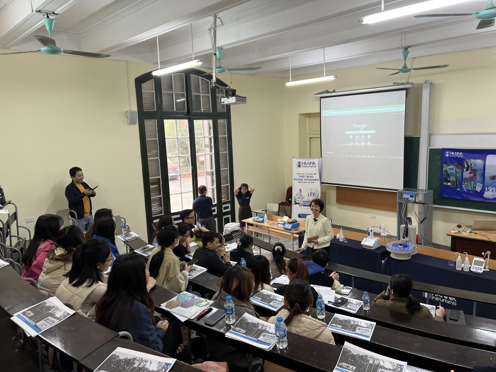 Seminar Khoa học và Thực nghiệm do Bộ môn Hóa học Phân tích và Công ty Hanna Instruments Việt Nam đồng tổ chức tại Giảng đường 1, Khoa Hóa Học, 19 Lê Thánh Tông. Cán bộ, học viên cao học và sinh viên của Bộ môn đã trực tiếp thực hiện các thí nghiệm phân tích hiện trường sử dụng các thiết bị hiện đại được Hanna Instruments Việt Nam tài trợ. thí nghiệm giúp xác định các chỉ tiêu môi trường cơ bản.